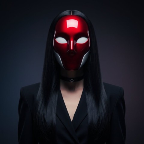 Futuristic Woman Wearing Glossy Red Mask