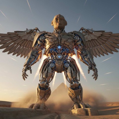 Great Sphinx of Giza Transforming into a Colossal Mecha Robot