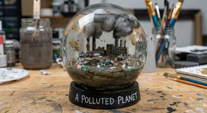 environmental pollution awareness illustration polluted world snow globe environmental pollution concept climate change illustration polluted earth artwork global warming awareness art environmental crisis visual snow globe earth pollution dystopian environment illustration sustainability awareness image polluted planet concept art climate crisis visual metaphor eco awareness design environmental day eco friendlyKevins