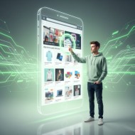 digital technology concept illustration young man smartphone giant smartphone screen mobile technology concept digital interaction modern technology illustration smartphone interface mobile app concept digital lifestyle futuristic technology touch screen interaction user experience concept tech communication online shopping window shopping man looking smartphone e commers website clothes internetmarin