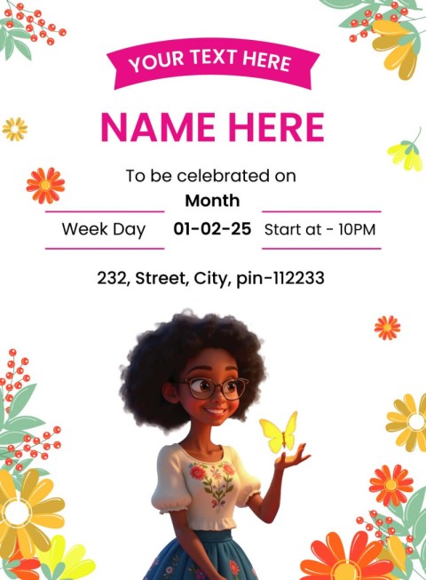 floral birthday invitation creative birthday invitation party invitation birthday template birthday background birthday party floral template birthday floral template floral invitation elegant invitation birthday celebration birthday frame anniversary invitation birthday gift flowers vector flowers fun decoration greeting card birthday card birthday backgroundSimilar Photos