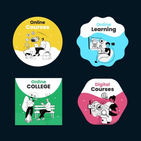 education online courses labels vector template study labels college labels label template education template education vectors templates icons vector icons online courses digital learning concept simple designs graduation professional qualification university knowledge coaching online coaching explore teaching design banner designSimilar Photos