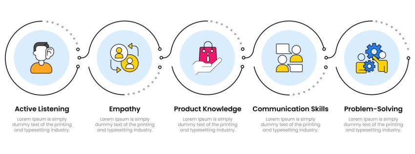 stock vector sales salesperson skills infographic steps active listening product knowledge service flow active listening empathy product knowledge communication skills problem solving template design banner customer service infographic salesperson skills infographic customer service training graphics icons commerce sale services consulting talking communication teamwork customer consumer solution strategy employee 5 steps chat presentationSimilar Photos